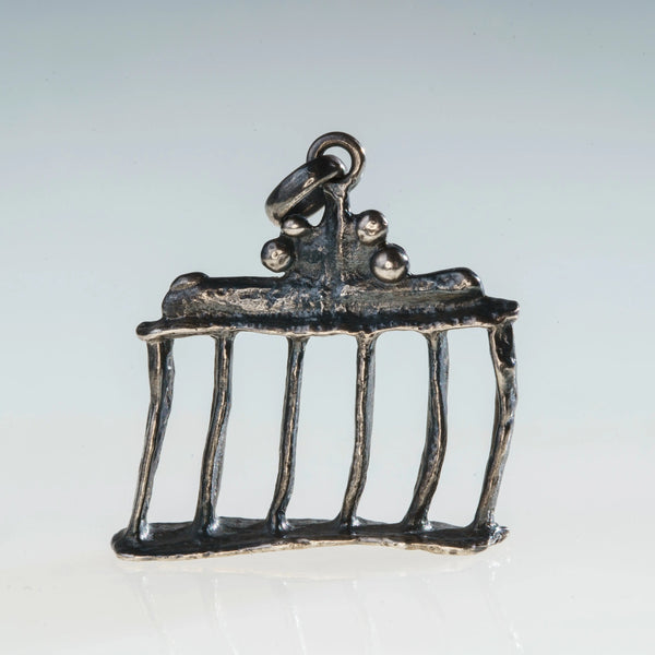 "Brandenburger Tor Anhänger" in Silber Dieser kunstvoll gestaltete Anhänger wiegt ca 11,5 g und ist das Resultat meisterhafter Handwerkskunst. In einem traditionellen Sepiaschalenverfahren wurde das ikonische Tor in verlorenem Guss hergestellt, wobei jeder Schritt mit großer Präzision ausgeführt wurde, um die feinen Details und die historische Bedeutung dieses Denkmals zum Leben zu erwecken. Aktuell wird dieses beeindruckende Modell in einer Vielzahl von edlen Legierungen in limitierter Kleinserie gefertigt, wodurch sowohl Liebhaber des geschichtlichen Erbes als auch Sammler von einzigartigem Schmuck gleichermaßen angesprochen werden. Ein wahrhaft außergewöhnliches Stück, das auch als symbolisches Accessoire dient, das die Seele Berlins verkörpert.